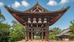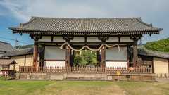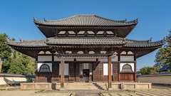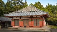 勧進所のまえを北へ歩き、左手に池を見ながらさらに進むと、正倉院に出る。聖武天皇遺愛の品々を納めた北倉、東大寺の年中行事用の仏具などを納めた中倉・南倉に分かれ、三ツ倉とも称されていた。いまは東大寺を離れ、宮内庁の管轄になっているが、毎年秋には奈良国立博物館で宝物の一部が展観される「正倉院展」が開催される。