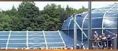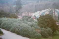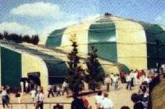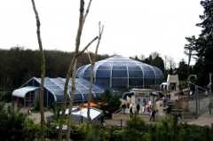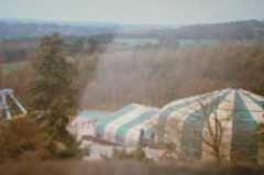 To build this ride, the rail framework had to be covered completely with a canopy, but not before a quarter of a million tonnes of soil had been dug away from the hillside. The tent the ride was housed in was originally green and yellow, but in 1998 when Oblivion was installed it was rethemed and painted blue.