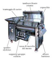 Preparazione dei mosti. I grappoli, raccolti e trasportati al locale di vinificazione, vengono pigiati (in passato ciò veniva effettuato con i piedi, oggi il lavoro è svolto da una macchina;fig. 1). Per quanto riguarda la pigiatura meccanica, una importante innovazione è rappresentata dalla diffusione di speciali torchi continui, dettivelocipresse, che esercitano sull’uva una pressione soffice e rapida, consentendo di separare il mosto dalle bucce e dai vinaccioli, che rimangono sostanzialmente intatti.