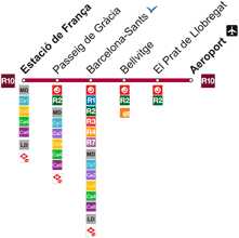 | Serveis parcials | Estació de França-Aeroport (2 trens/hora) |