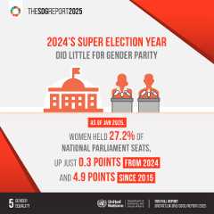 - As of 1 January 2025, women held 27.2 per cent of the seats in national parliaments; this is up 4.9 percentage points from 2015 but only 0.3 points from 2024.