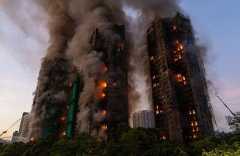 Frá Hong Kong í morgun. Fjölbýlishúsin sem loga eru mjög stór.AP/Chan Long Hei