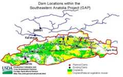 Envisaged in the 1970s, the GAP master plan aims to develop nine administrative provinces of the Southeastern Anatolia region. Projects on the Euphrates and Tigris rivers will provide water for irrigation and power to arid areas in south-eastern Turkey.