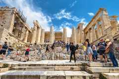 SunnyGreece bans heels in many ancient sites to preserve their integrity, including the Acropolis. The ban-effective since 2009, protects national treasures from tearing, which is respectably righteous. Although it may be tempting to wear heels on the streets of lively cities like Athens, there are many towns with cobblestoned, hilly streets that would make wearing heels uncomfortable and dangerous.