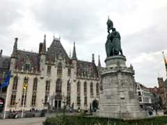 馬克特廣場Markt Square,廣場前方的市政府是比利時最古老的哥德式建築,牆上刻有取材於聖經故事和歷史人物的各式形象鮮明,生動傳神的浮雕,處處顯示著布魯日昔日的輝煌,證明她的確是歐洲最繁榮的城市之一。