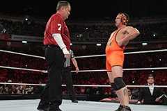 The Raw SuperShow announcer praised THQ for how realistichis character looks, especially his trademark orange singlet. “It’s the bestpart of the game,” Cole proudly said. “Whowouldn’twant to play as Michael Cole in my classic orange singlet that I debuted atWrestleMania, and that’s made appearances at other pay-per-views and, ofcourse, on Monday Night Raw? Man, Ithink I’ll play as myself all the time.”