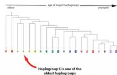 Haplogroup E isold, having emerged more than 70,000 years ago, likely in East Africa. Today descendants of this original ancient group remain highly concentrated in many regions of Africa, giving insight into the archaic movements of people on the continent. The less frequent, but long-established presence of members of haplogroup E in the Near East and Europe demonstrate other ancient migrations of the haplogroup out of the African continent. This is also the most common Y-DNA haplogroup for current-day African Americans, in both North and South America. Haplogroup E has something to say about myriads of people over vast swaths of the globe.