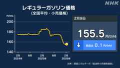 ガソリン小売価格 3週ぶり値下がり 全国平均1リットル155.5円