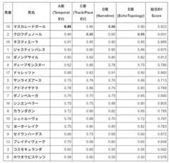 全馬のデータ分析を統合した結果、以下のスコアが算出されました。(スコアは0.00 から1.00 で正規化)